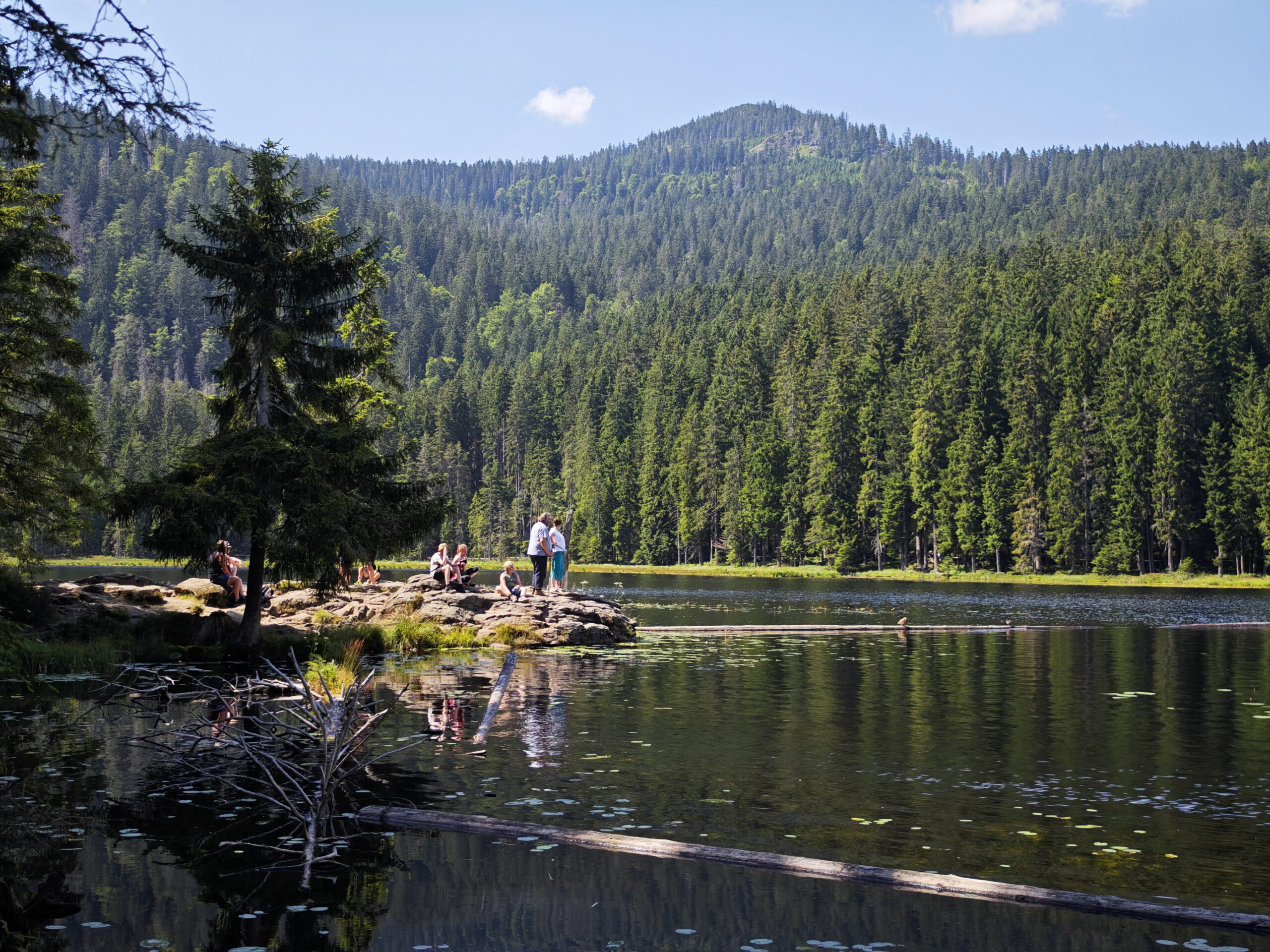 Am Großen Arbersee angekommen, bietet sich eine verdiente Pause an. Der barrierearme Rundweg um das Ufer ist kurz und entspannt und erlaubt einen tiefen Blick in die unberührte Natur. Wer diese ausgedehnte Tagestour (ca. 14–16 km) in vollen Zügen genießen möchte, sollte unbedingt die Morgenstunden nutzen, um den Massen an den beliebten Hotspots zu entgehen und die Ruhe am Seeufer zu erleben, bevor der touristische Ansturm beginnt. Die Kombination beider Ziele macht diese Wanderung zu einem unvergesslichen Erlebnis im Herzen des Bayerischen Waldes.